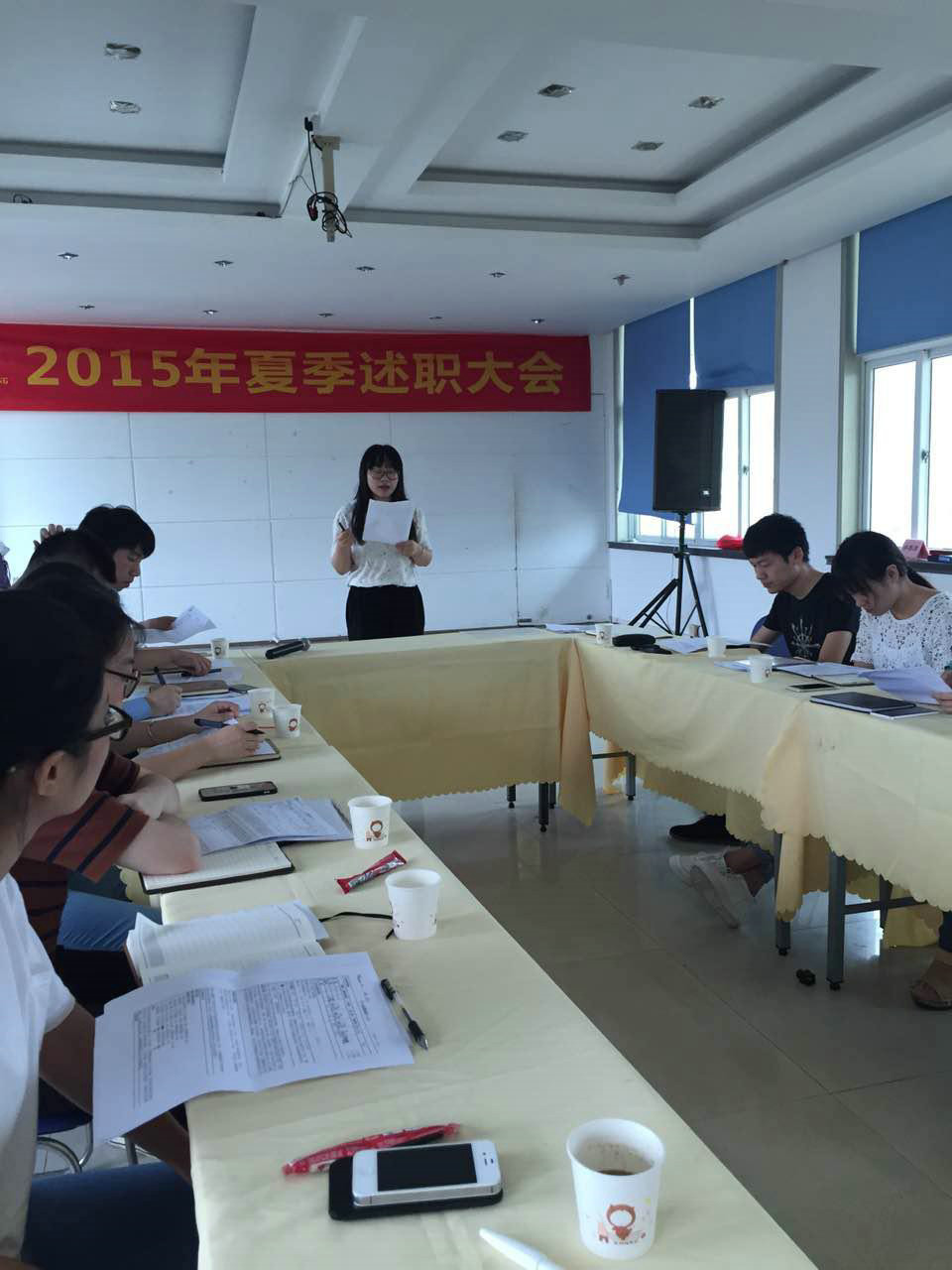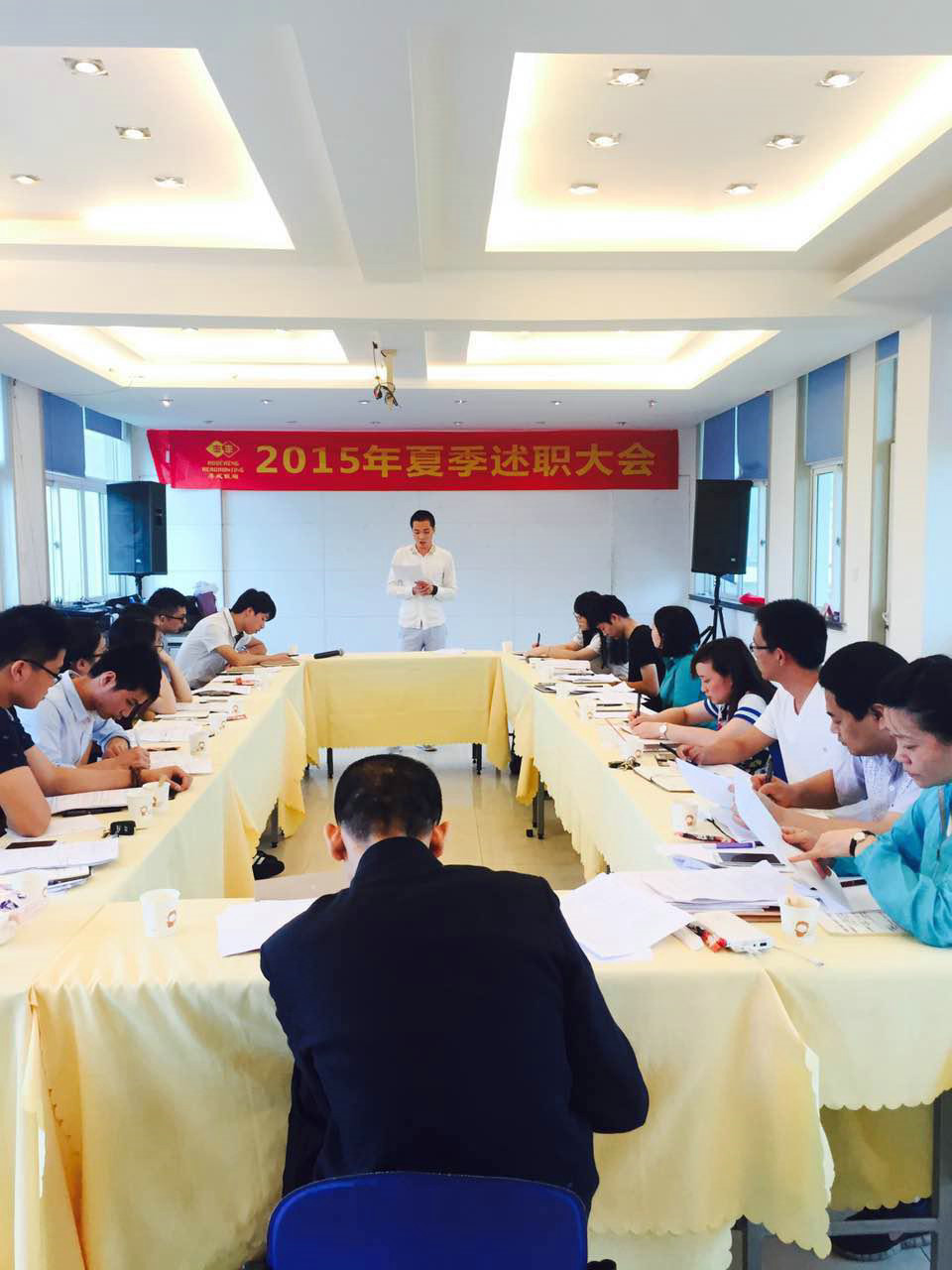 温州厚成猎头公司各部门负责人及成员汇报了2015年上半年任务目标完成情况、工作中的主要问题及下半年的工作思路。提出下半年进一步提高公司业务品质的要求,努力做好客户服务,以落实“厚德载物,成人达己”的企业理念。