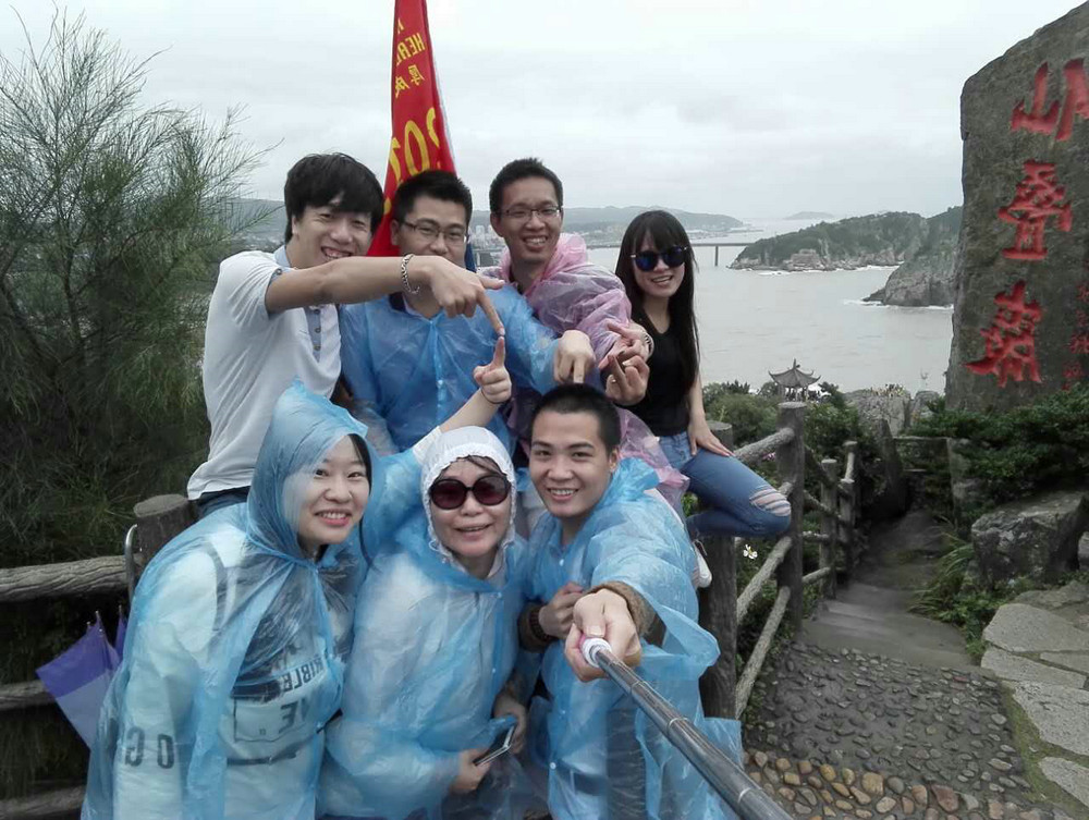 除此之外,为强化员工“信任”、“激情”、“知难而上”、“坚持”的工作心态,7月5号上午,全体员工迎着东海之风,天空细雨,游览了洞头景区仙叠岩。游览活动气氛踊跃,高潮迭起,并未因天公不作美而影响出行的心情和决心,反而更激发了员工们不畏风雨,看准目标后,只顾风雨兼程的信心与决心。一路我们从东岙渔村出发,伴着这帅哥美女们的自拍与说笑,沿着叠峦起伏的海岸线向仙叠岩主景区进发。海岸线此起彼伏,且海浪一波接着一波拍击着海岸线,将海边的岩石雕琢着精彩纷呈,让我们感受到大海的震撼的同时,也感受到了水滴石穿坚持的力量。一路伴随着我们厚成帅哥美女们的自拍与说笑声,我们到达了仙叠岩,并在仙叠岩进行了合影,给这次户外拓展划上圆满的句号。